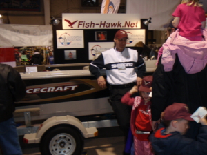 This year in stead of exhibiting my 12-foot Blind Fishing Porta-Bote, I joined forces with Rob Atkinson of Fish Hawk and Laurentian Marine of Ottawa.  Fish Hawk and Laurentian are both huge supporters of the Blind Fishing Initiative, and it was a blast to join them at the Show.