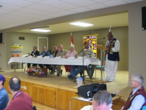 The evening prior to the Tournament Miles and I were honored with the privilege of sitting at the head table at the BAIT dinner. I provided a short up-date on the status of the Blind Fishing Boat project to the 60+ blind fishers, 35 sighted pros volunteering their time and boats, and 50 or so Lions from across Eastern Ontario responsible for organizing the event. Following my up-date, I introduced Miles who held the audience spell-bound with his highly-engaging motivational presentation (click to listen).