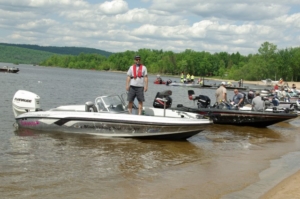 Weather for the 24th annual BAIT event seemed promising with a spring that was right on track to deliver up some great fishing.  We weren’t disappointed.  Piloting my Ranger 619 Fisherman for the event was Scott Campbell, a regular on the local tournament fishing scene.We arrived at the Nangor Resort on the Ottawa River just outside Cobden Ontario early enough the day prior to the event to launch the Ranger and do a bit of reconnaissance.  As expected, weed growth in the back bays was healthy with water temperatures nearing the mid 70’s, with a slight stain reducing visibility to 5 feet.  Sure enough, the post-spawn Walleye and Pike were still co-locating in the weedy bays at depths of between 2 and 6 feet.  The pre-fish ended abruptly with our running for cover following a text from Scott’s wife alerting us to a tornado warning posted for our area.  The Ranger was back on the trailer and covered ten minutes before a powerful storm rolled through; knocking down a number of trees.