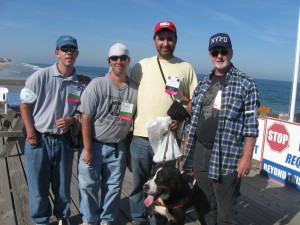 Participants in the tournament were provided with identical rods, reels and terminal tackle.  Everyone was expected to use the Blood worms provided for bait.  Each participant was responsible for casting out, hooking and landing their own fish; however, assistance could be obtained for baiting hooks and releasing fish if required.  Species being sought included: Cobia, Croaker, Flounder, Sheep Head, Gray, Red Drum, Spot and Striper.  Rays are not counted and are not to be brought on to the peers or boats due to their troublesome tails.