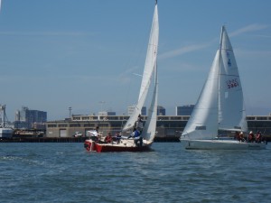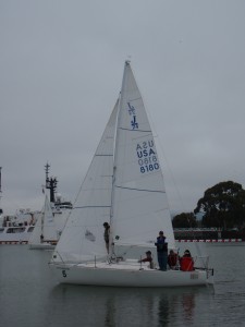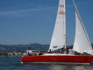 Al Spector and Danette Davis of the Marin Sailing School organized the event, which was hosted by the Island Yacht Club located on Alameda Island situated in San Francisco Bay. Teams came from Boston, Canada, Japan, two from California and our own.  Six races were held on day one, and three additional races on day two.