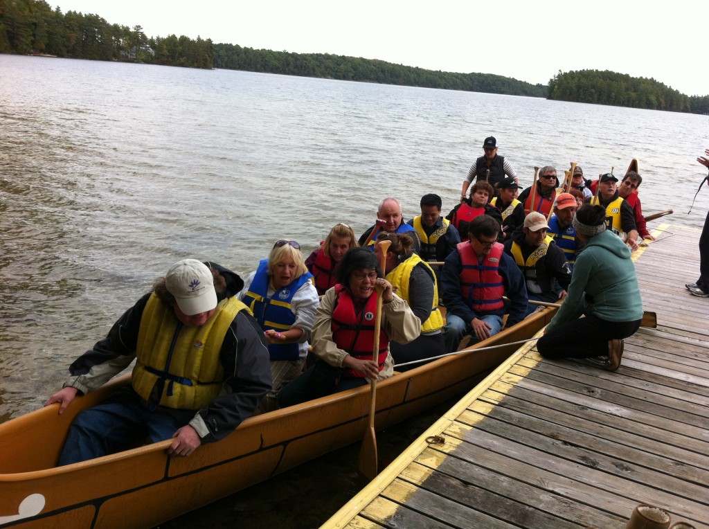 18 paddlers aboard the Lake Joe Voyageur canoe
