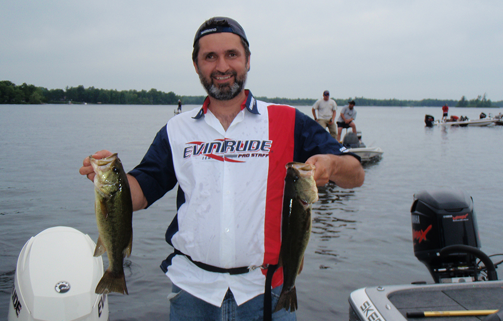 Lawrence holding 2 bass caught while fishing on White Lake