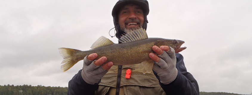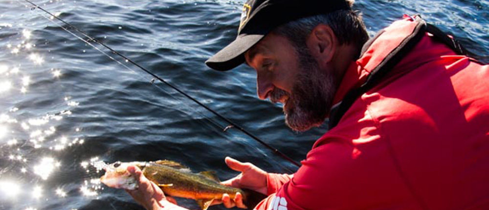Photo of Lawrence Gunther releasing a Walleye