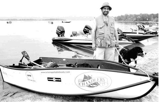 Lawrence Euteneier, 43, of Ottawa, who is totally blind, built the easily portable hard plastic boat, which, when knocked down, weighs about 75 pounds. “I used mainly components that are readily available,” he said.